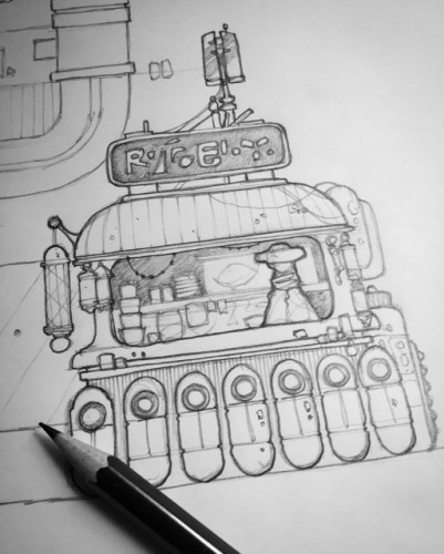 Sketching some sci-fi scenery for a commission.