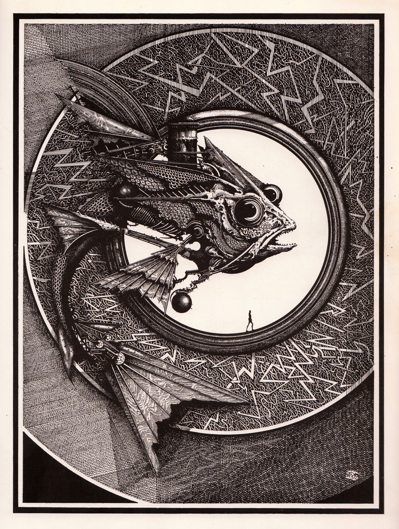 Colouring the worm was reasonably simple using Photoshop. The colour palette was always going to be a dark aqua-ish background with a much more vivid worm. The shading and patterns were built up layer by layer, about 30 layers in total, the eye alone having over a dozen layers.