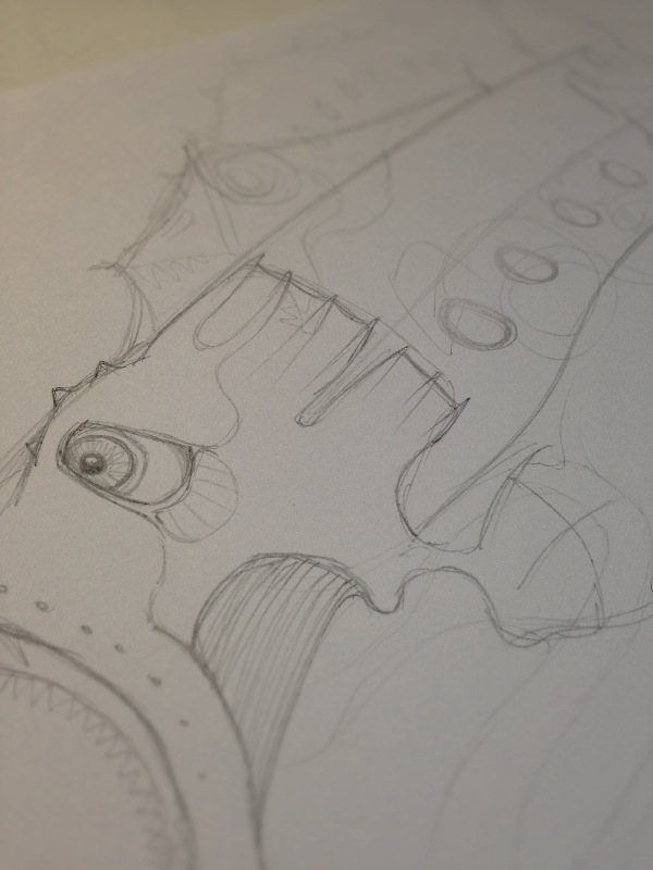 …so I had something to go on. I wanted to keep something of the lamprey about the creature too, so it was definitely going to be eel-like with the distinctive lamprey gill pores along its side. My first sketches weren’t promising though.